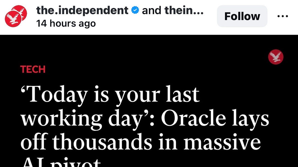 Oracle corta 30.000 vagas em um único movimento e ainda estamos fingindo que a IA é apenas uma força para o bem